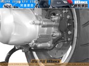 GTV250ie極速可達122km/h,廢氣也符合歐盟三期標準。電子燃油噴注系統採用Lambda感應器來監察運作,比起使用化油器的電單車來說,GTV250ie更省油,廢氣更潔淨。 |