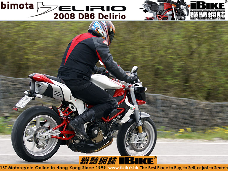油缸在騎士膝部的位置十分窄,人車合一感覺強烈。加上DB6轉向動作敏捷和澎湃的拉扯力,便像混合著跑車和supermoto的特性,令DB6的玩樂性和寬容性都十分高。可惜短身座位限制著騎士在座位上前後移動,挺直的座姿令我的背板碰到尾座墊,迫使我要盡量前伏一點。