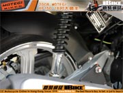 頭制動規格是兩活塞單碟,附機械式ABS功能,尾制動是單活塞單碟。試騎的XP150樣本中,制動力有點遲疑,可能是迫力皮和迫力碟之間還未充份磨合。 |