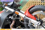 Ulysses XB12X在公路上表現理想,但在爛路行駛便有幾點要留意。首先是原廠配搭的輪胎以應付馬路為主,第二點是中置底出的排氣箱減少了離地距,第三是375mm直徑的頭迫力碟,令人擔心在泥地上使用會否過強。 |