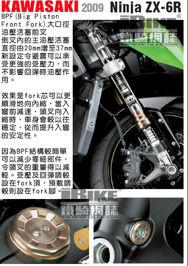 ZX-6R的其中重要發展方向,便是要令新車既維持ZX-6R一貫的彎中穩定性之外,還要再進一步提升操控,包括減磅變輕。09年新車無論長闊高、座高或軸距,都比兩年前的ZX-6R再縮細了一點點。