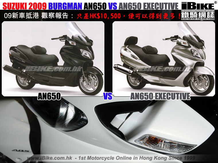 09年AN650的最大分別,是售價高企。受到日元不斷升值所害,所有日本電單車售價在09年都會大幅加價。AN650當然也不會例外,執筆時等待海關批準的建議零售價是HK$79,000(標準版)和$89,500(行政版)!!被嚇了一跳吧?當日本一公升跑車的賣價是十三萬時,AN650賣八萬,升幅仍然合理呀:( |