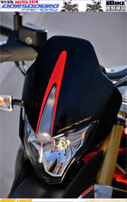 Factory車架表現很好,比起同廠兄弟Shiver有更佳表現。在路面狀況很差,或騎士錯讀彎道而作出臨急修正的情況下,都表現出高度的寬容性。跟車屬於原裝配備的Dunlop Qalifier II高性能道路輪胎,在應付92hp馬力時顯得游刃有餘,抓地力十足十。 |