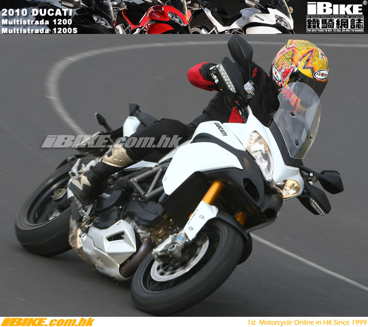 mode會更讓乘客舒適。在闊把手和850mm座高的駕駛環境下,我感到相當舒適,空間十足。軟滑的極力子表現,絲毫不似Ducati以往硬橋硬馬的風格。可調較的風檔即使在最低高度仍能發揮理相的擋風作用。當然把風擋調至最高,效果會更佳。六速波箱運作順滑,乘客可以享受到高質素的乘坐感。MTS1200相當馴服呢!