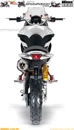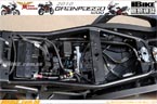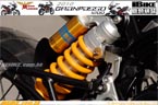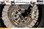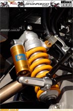R17無內膽原子胎,總負重上限是430公斤。行車時,整體的避震設定偏向運動化表現。慢車時或巡航時,直徑達到50mm的Marzocchi倒叉和平臥式Ohlins尾避震,吸震表現良好。快車時也沒有過軟或水床般的搖擺表現。