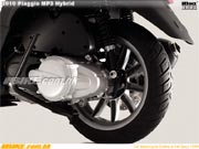 The Piaggio MP3 Hybrid incorporates a “parallel” hybrid drive in
