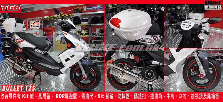 125留下深刻印象。尤其是金屬地台、GT尾翼、頭尾雙碟煞規格,都是Bullet 125的煞食賣點。試騎的Bullet 125更由TGB代理富輪一手包辦改裝,換上碳纖仕樣的車頭和台灣Kit避震