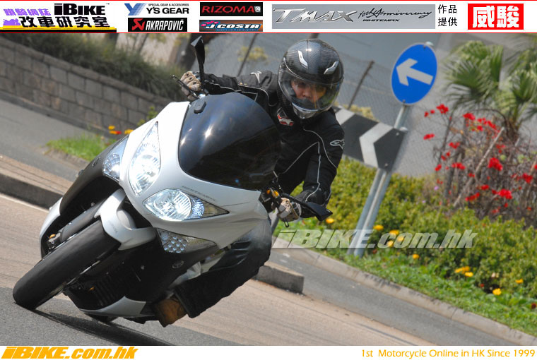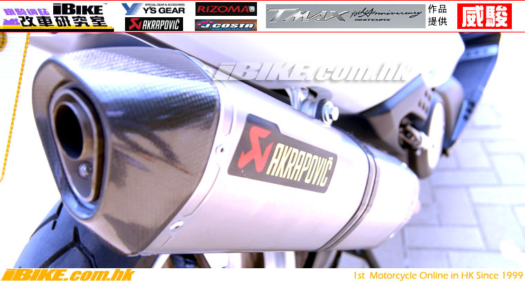駕駛感受 錢花了這麼多,表現沒可能會不理想吧?除了車身飾件只帶來外觀享受之外,真正影響性格是J.COSTA的24顆離心起動 珠盤,令這臺Whitemax起步加速的表現,比原裝車爽 很多。引擎轉數可在4,000轉便可力爭上游排眾而出。尤其用上全梳鈦合金AKRAPOVIC排氣喉後,中尾段的輸出更為爽快。尾速更有保證。制動 系統用上Brembo制動卡鉗和BRAKING碟後 ,收車也份外得心應手。