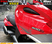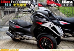 | 2011年Fuoco 500ie仍採用Gilera車廠100週年記念章作為主題,但車頭護架