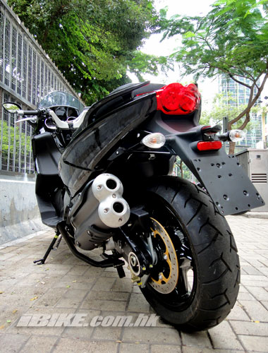 。乘客腳踏是彈摺式設計。頭高燈用魚眼,配LED尾燈。孖邊排氣喉符合歐盟三期標準,排氣喉有隔熱保謢蓋