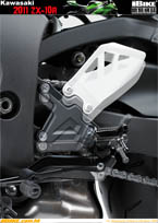 ZX-10R的座高由830mm回落至813mm,軸距由1415mm增長至1425mm,離地距由125mm增高至135mm。總結是車身短了,但兩輪之間的距離
