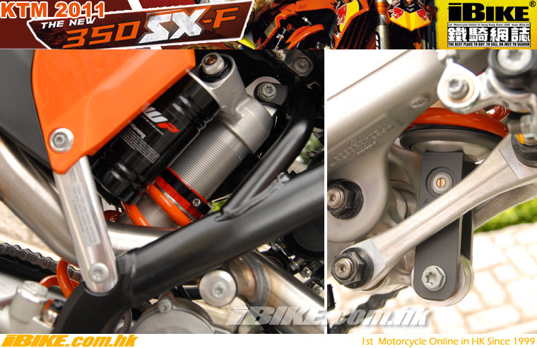 為了達到這目的,2011 350 SX-F採 用 新啡呤 和 新引擎 。為了提升表現, 多連桿式尾避震 設計也經過修正改良。