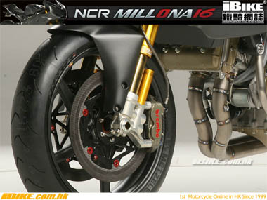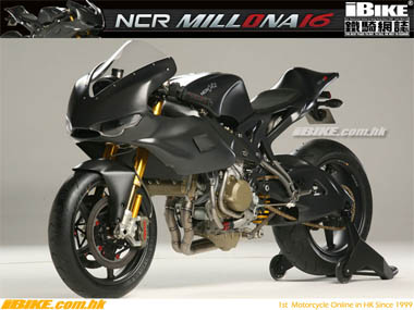 V4引擎,全車骨骼由NCR自家重新製作,選用最輕最硬的碳纖物料和鈦合金,重新製作車架、搖臂、輪圈、油缸和包圍。NCR並選用MotoGP級數的前後避震和