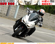 SRV850在怠轉時震動頗為明顯,連後鏡也在抖動。日本雙缸綿羊的怠轉震動便抑壓得更成功。不過SRV850一扭油起步的反應卻勝過所有使用CVT波箱的日本雙缸綿羊。即是扭油震動少,馬上有力傳達至尾輪,起步快,慢車操控特容易,足以彌補怠轉震動明顯的缺點。不過以起步的結實感覺,仍以使用DCT波箱的Integra最為猛烈。 |