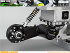 Evolution沒有引擎,所以車架不需要有主車架的設計。工程師把沉重的電池盡量置底,降低重心,並把鋁合金電池架作為車架重要的結構成員之一。