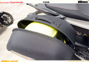 SP選用。 第二級是頭尾ABS,容許少量尾輪升起。第三級是最強的ABS防護,不容許尾輪升起。頭輪制動卡鉗是兩組單件式M4-32徑向式四活塞卡鉗,配上頭320mm孖碟,尾輪是245mm單碟配Brembo卡鉗。