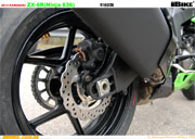 原來ZX636的Uni-Trak避震增加了連桿比率,彈簧長了25mm,彈簧取材也軟了一點,讓騎士屁股不再那麼受罪。如此行街時便會相當舒適,高速劈彎又會有足夠支撐作用。