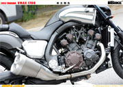 第二代VMAX當然比第一代VMAX更利害。雖然同樣以水冷V4機器為基,但排氣量由1198cc提升至1679cc,壓縮比由10.5增至11.3:1,馬力激增至200ps,扭力由10.5kg-m提升至17kg-m。 |