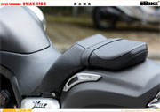 VMAX 1700的座位雖然不算高,但闊度十足。人坐上車後,雙腿會被飽滿的車身張開。再加上中置的腳踏會頂住小腿,