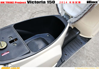 Victoria座下可收納一個正常呎吋的大頭佛頭盔,地臺位置可放行李箱。
