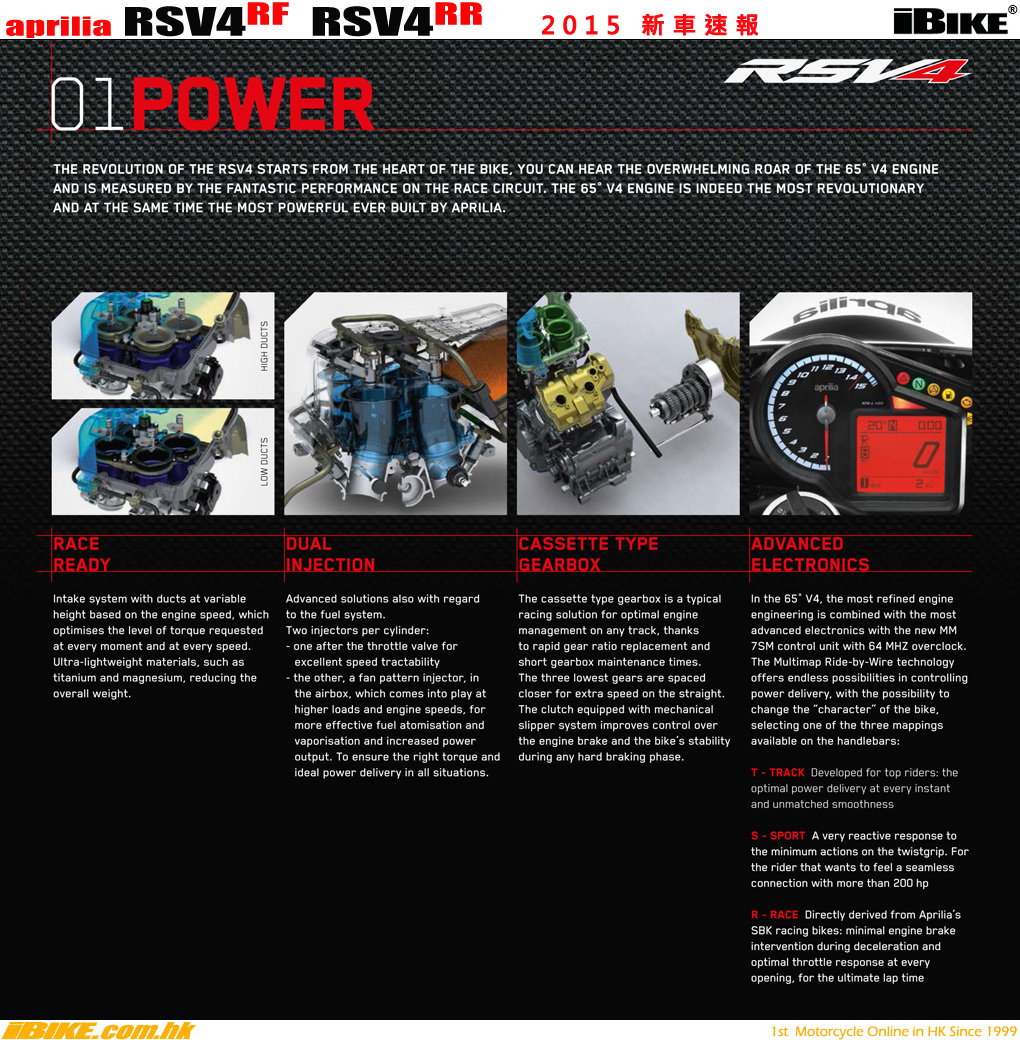 aprilia RSV4自面世以來,一直在WSBK屢創佳績, 今年甚至破格染指MtoGP賽事,實力強橫實在無出其右。 來到2015年,aprilia準備了三款RSV4上架: 分別是RR,RR Racing Pack和RF Superpole。 單看名字,有點摸不著頭腦。 先找出起步原點便容易明白了。 ![]() |