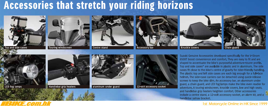 並引入全整系列的附加選購產品,令V-Strom 650成為一臺更強更全面的歷奇巡航電單車。 |