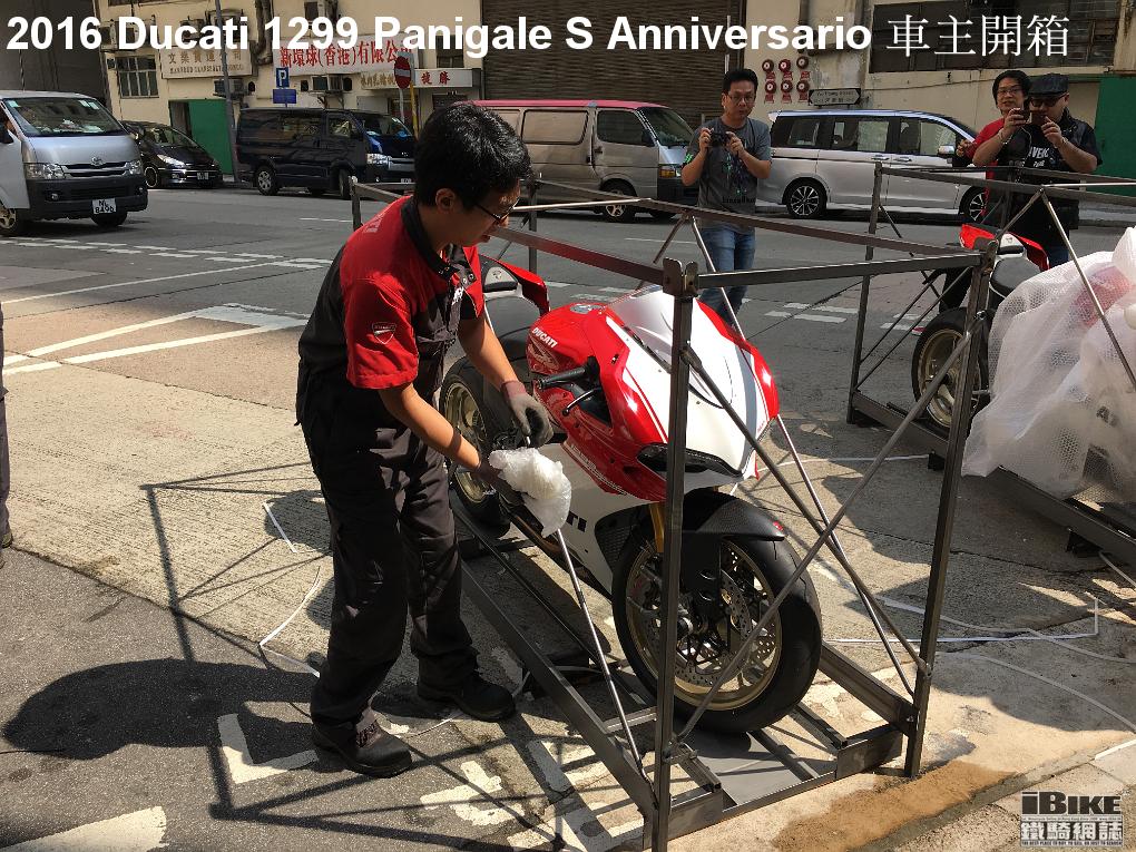 1299 Panigale S Anniversario便新鮮到港!三位車主苦候多時,當然第一時間睇下新玩具啦!呢款新車係特別為慶祝Ducati90週年而限量製作500臺,配上全新白黑紅拉花襯上金色輪圈,最重要是新車配備全新traction