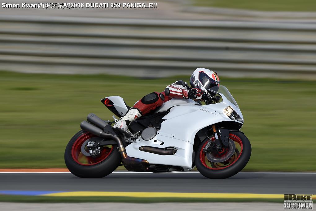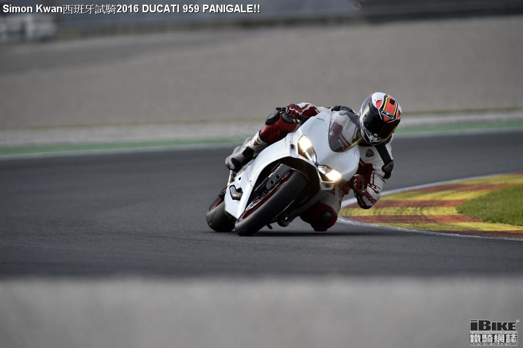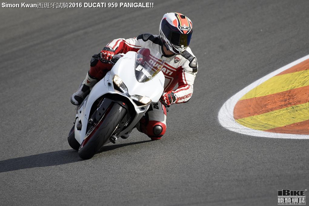 | 先説説引擎,959比較起899,在中段扭力方面優勝很多,尾段爆炸力也有改善,感覺有點像我的舊1199 feel。Valencia是一個非常多彎的場地,扭力好是對車手很大的幫助,而大會為了我們玩得能盡興,把輪胎換上了Diablo Supercorser SC2,所以抓着力是完全没問題。 |