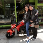 其中一位新車主是本地著名電單車收藏家Henry哥的太座May姐,是Henry哥送給她的復活節禮物。May姐選擇了半自動波版Z125(橙色),售價是HK32,500。當日May姐開箱也邀請了好友一起分享喜悅。