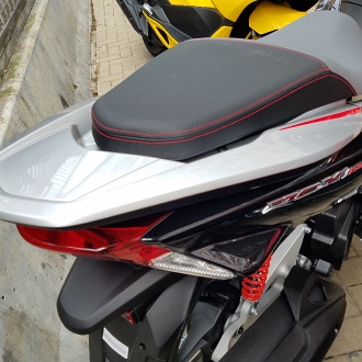 | 2017 HONDA PCX150 SPECIAL TwoTone版的車頭及車尾均有紅色線條拉花,還有紅色前卡鉗和紅色彈弓雙筒油壓避震。 Special 版更有TWO TONE雙色座椅及紅色線包邊!車頭及車尾均有紅色HONDA Logo字,呢一千蚊,花得相當有價值。 |