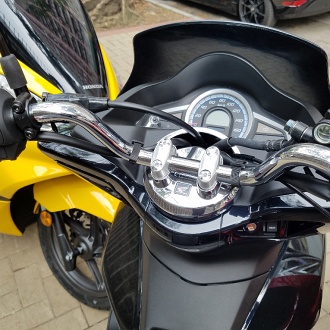 座下也有25公升儲物容量,可收納全罩式頭盔、雨衣及手套。座位和油缸艙門都是一按即開。座位開關的絞位加入彈簧支撐,比起油壓設計更節省空間,也可防止座墊意外跌下。 車頭左方首飾箱的容量增加了74%,並增設12V充電座。新車的首飾箱可收納一瓶500毫升的飲品,12V充電座可為智能電話充電或為GPS導航儀提供電源。 PCX150位於地臺之下的油缸容量有8升,在最樂觀的情況下,續航距可達到350km。 |