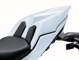 新車的前傾角和拖曳距變得更運動化。以前ER-6n是25°及109mm,新車Ninja 650是24.5°及110mm,而Z650則是最直的24°及100mm。原廠更為Z650準備了尾seat蓋,隨時可以把Z650變成單座版街車。 |