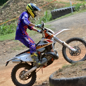 | iBike首席試車員Alex今次帶傷上陣淺嘗新車。他認為在越野場地之中,四衝250最平均,夠力、好操控又易駕馭。二衝300的火力已經很猛,一般人在越野場地之中未必用得盡。重量和馬力更大的450/500,日常行街會更適合。 |