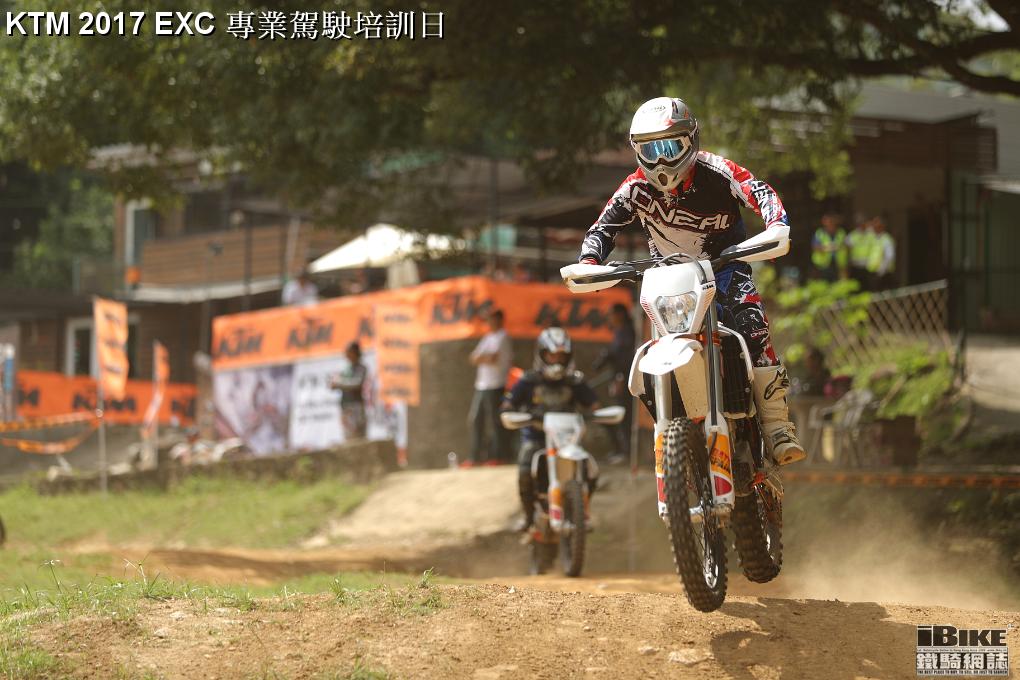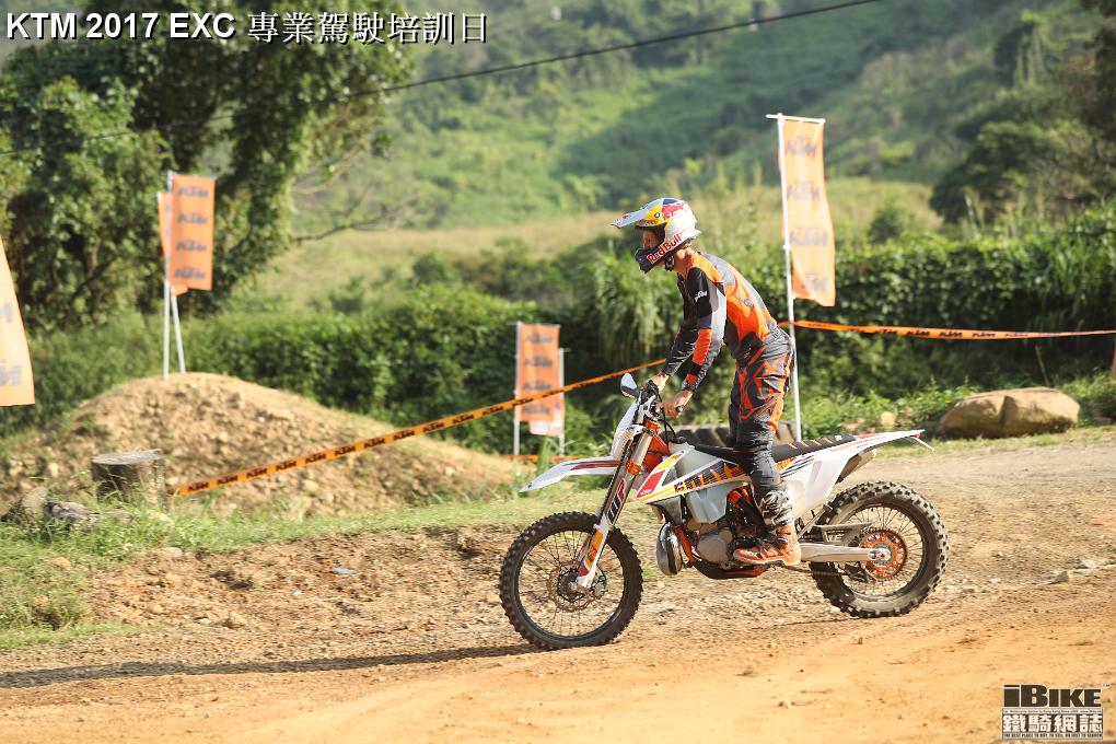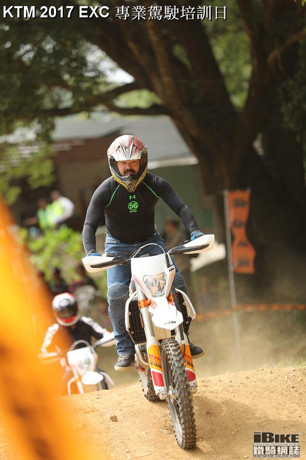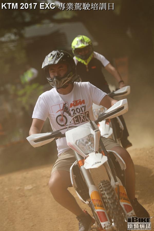 Henry 試騎了KTM EXC四衝程350cc,感覺是車身好輕。雖然車身好高,也有十幾年沒有騎過越野電單車,但騎上車仍可以勉強控制得到。