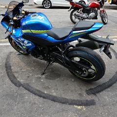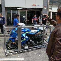 | 經過一輪開箱、裝嵌,入油和駁電的工序之後,Dickson在眾人要求之後發動新車引擎,並順便開一開胎,創下新車主開箱,最好同場開埋胎的先例:) 經過初步接觸之後,Dickson認為新車起步較舊款GSX-R1000容易,但雖然車身細小,但座位比舊款高,整體感覺很奇妙。 |