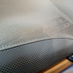 | 特仕版在車頭位置有Cyber Punk專屬金屬銘牌,座墊有立體壓紋,車頭和車尾有特別拉花,整體感覺似乎是吸引年輕人的行銷手段。對於只求代步,踏入不惑之年的車友來說,特仕版有點花俏。 |
