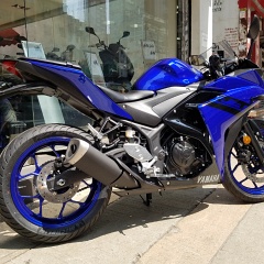 R3外表雖像跑車,但其實車架是鋼管搖籃車架,配合高置把手和低腳踏,所以R3基本上是一臺街車,它的把手擰左擰右的轉向角度很大。 攝車、泊位和掉頭都比跑車更容易。塞車時攝車一流,泊位簡直一絕。