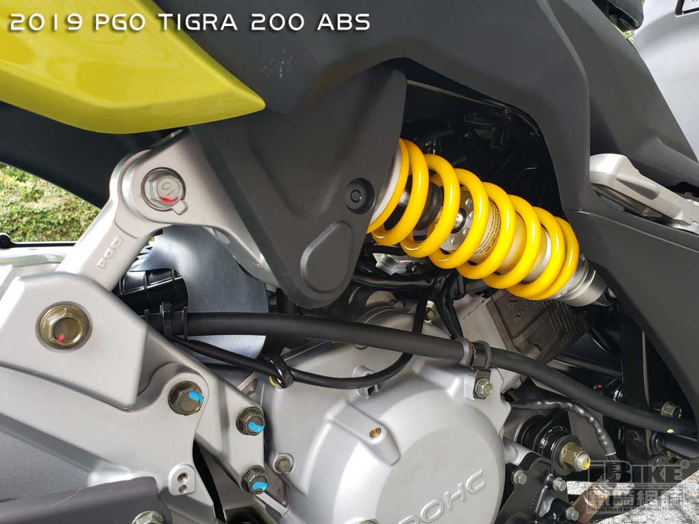 | PGO Tigra一向注重操控,Tigra 200也不例外。新車的避震感覺良好,後避震使用六連桿水平懸掛設計,吸震力良好。反而感覺有點硬身,層次感可以更強。透過多連桿式後避震,使重心感覺更低,無論高速轉彎及低速轉向,都能感覺到低重心帶來的安全感。 | ||||||
