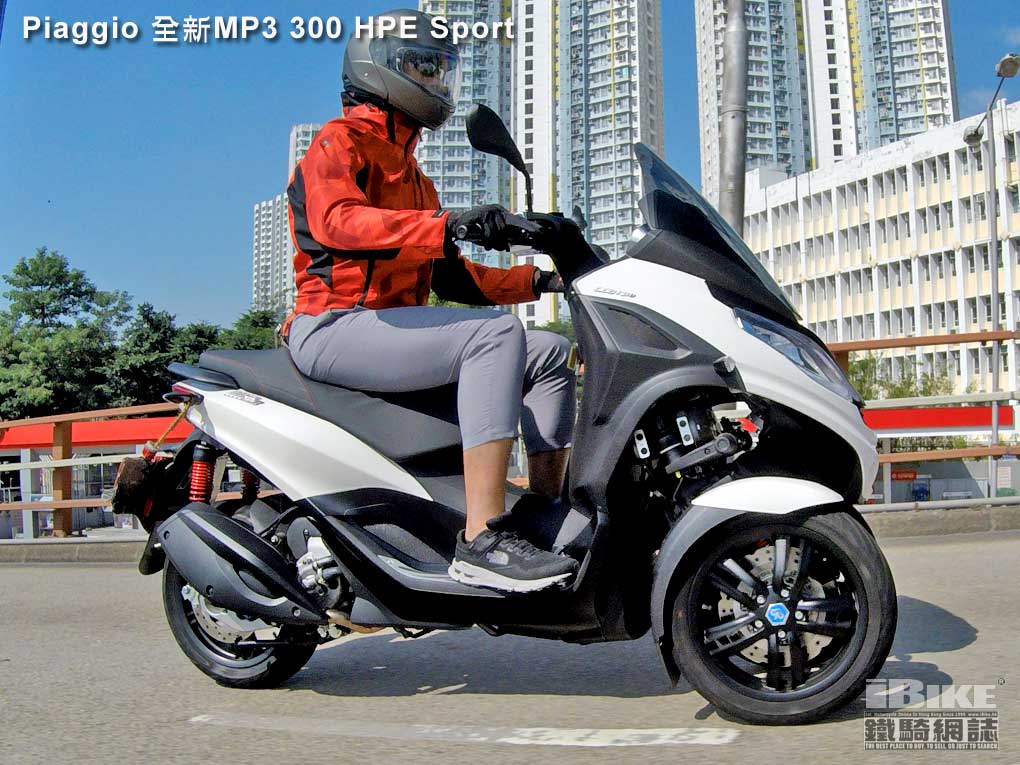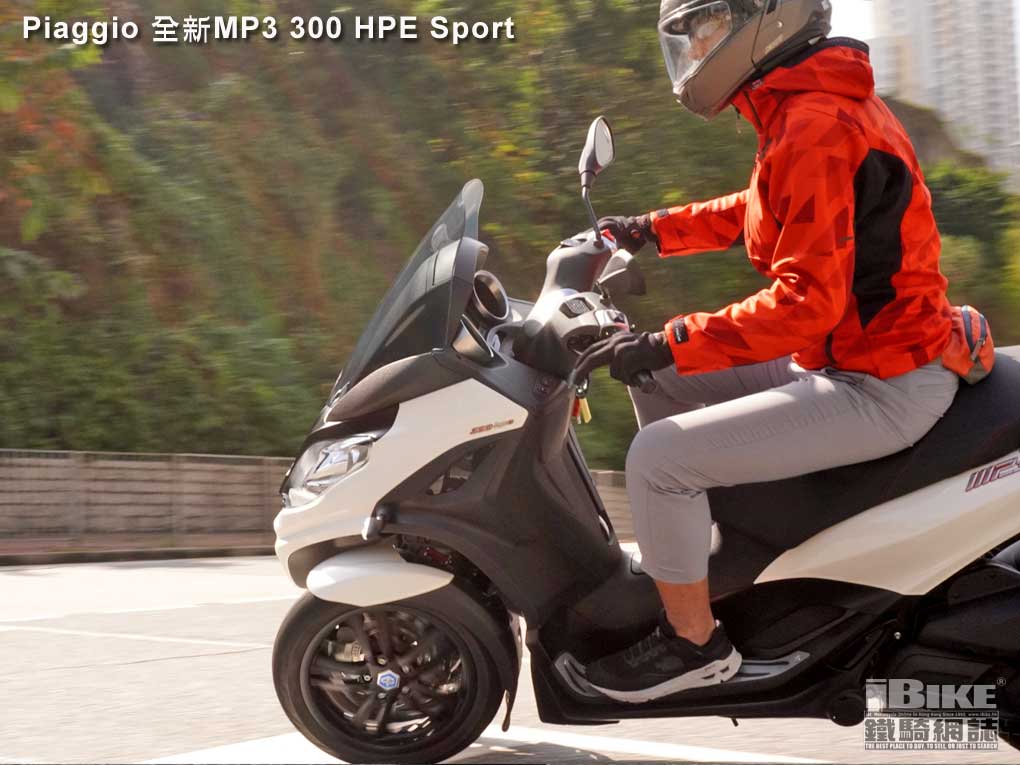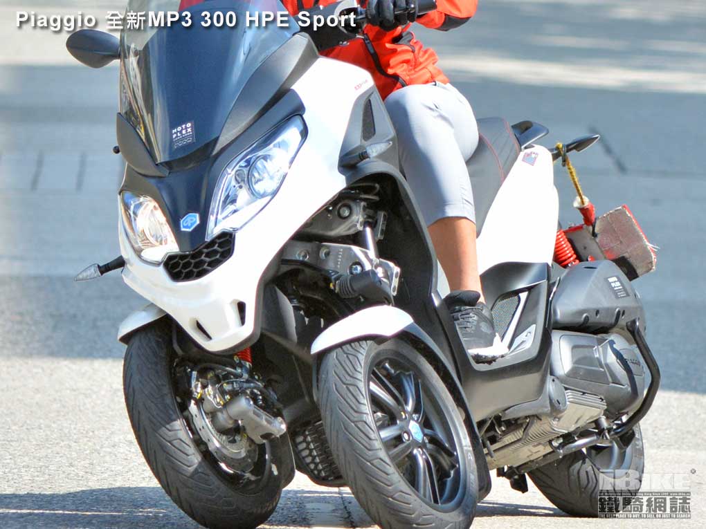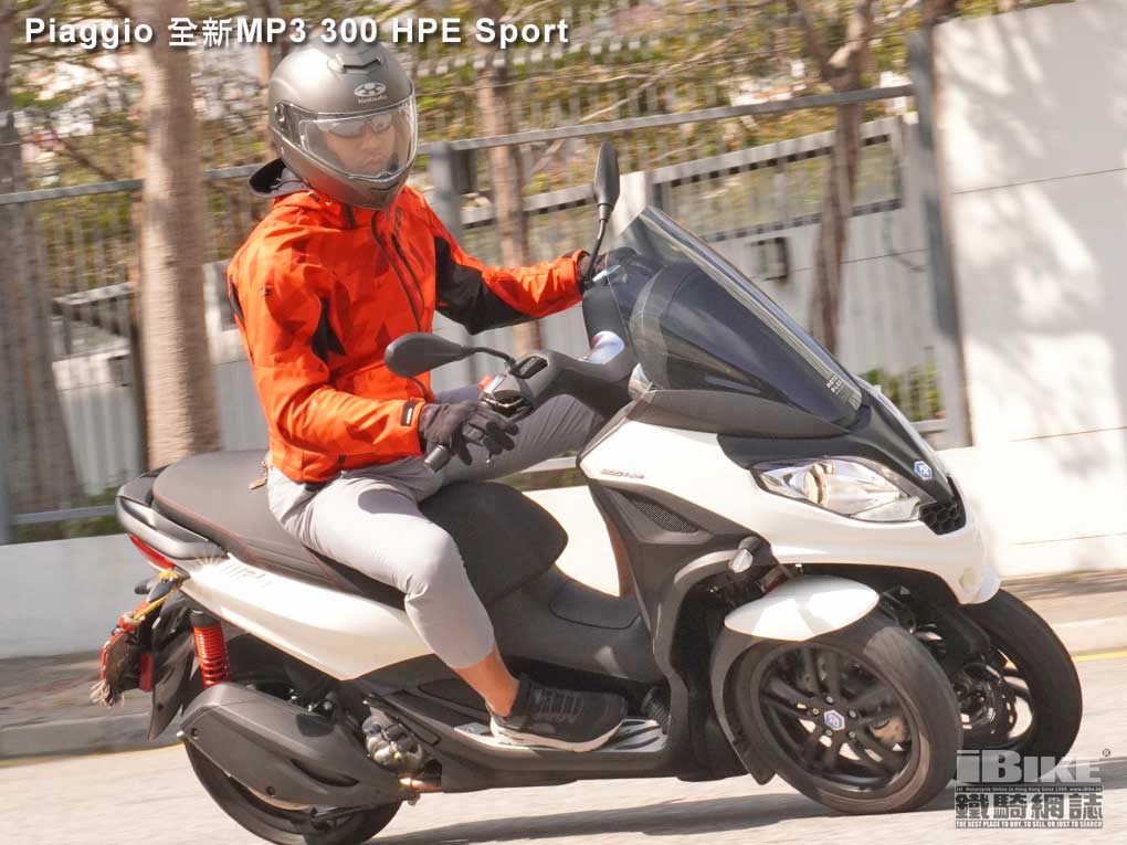 | MP3 300有分HPE版和HPE Sport版,兩款性能一樣,只是用色和配件有別。最易分別係避震彈簧顏色:HPE係黑色,HPE Sport係紅色。此外,HPE的頭迫力碟是傳統圓形,HPE Sport版是波浪碟,Sport版的乘客尾扶手是啞黑色。Sport版地台有金屬踏板,外形更美觀。所以我地今次試Sport版:) |