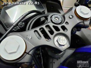 | 新R3的頭擔採用剛性更高的37mm KYB倒立前叉,連帶換上全新上眼鏡架,和全新LCD錶板。油缸設計也有改動,雖然14升容量不變,但新油缸闊了31.4mm,高度降低了20mm,有利騎士在攻彎時以油缸借力,支撐性和穩定性都較現款佳。另一方面,轉向把手低了22mm,跑味更濃。 |