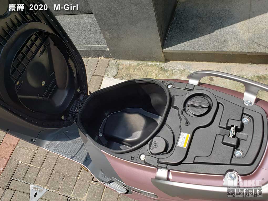 作為一款城市通勤代步車,M-Girl充分發揮了實用主義:18L的大座桶空間非常實用,前置物空間的深度也恰到好處,無論是放置手機、飲品或是雨傘都很穩當。