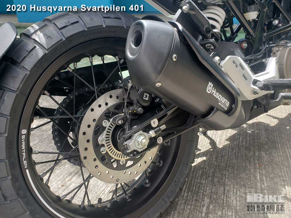 搭配鋼絲輪框和越野胎造型的多功能輪胎。外型搶眼的排氣管、簡潔的油缸蓋造型,帶給騎士無限優越及時尚感。相比起走CafeRacer的線的Vitpilen 401,SVARTPILEN的駕駛姿勢更為輕鬆。