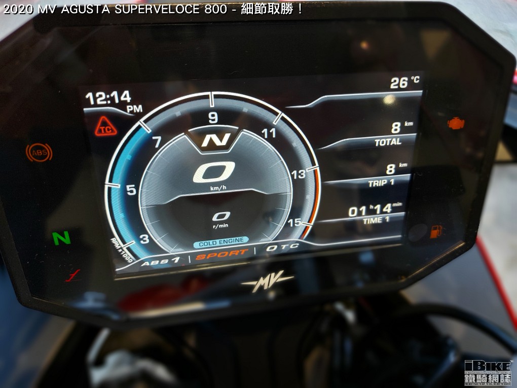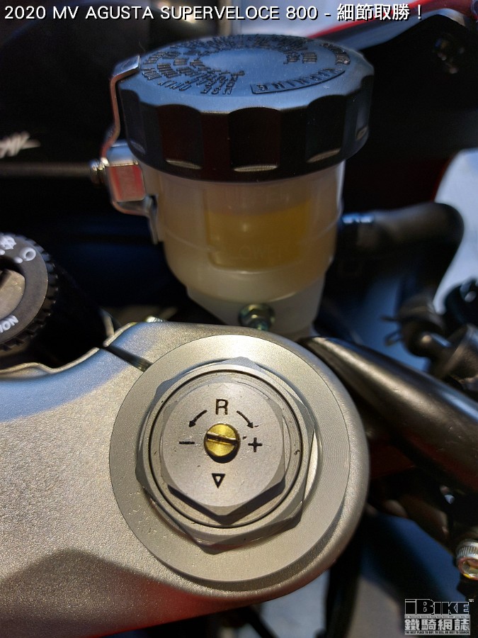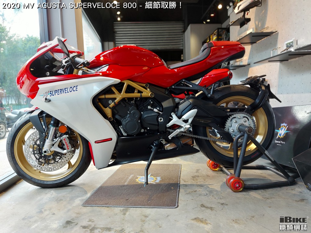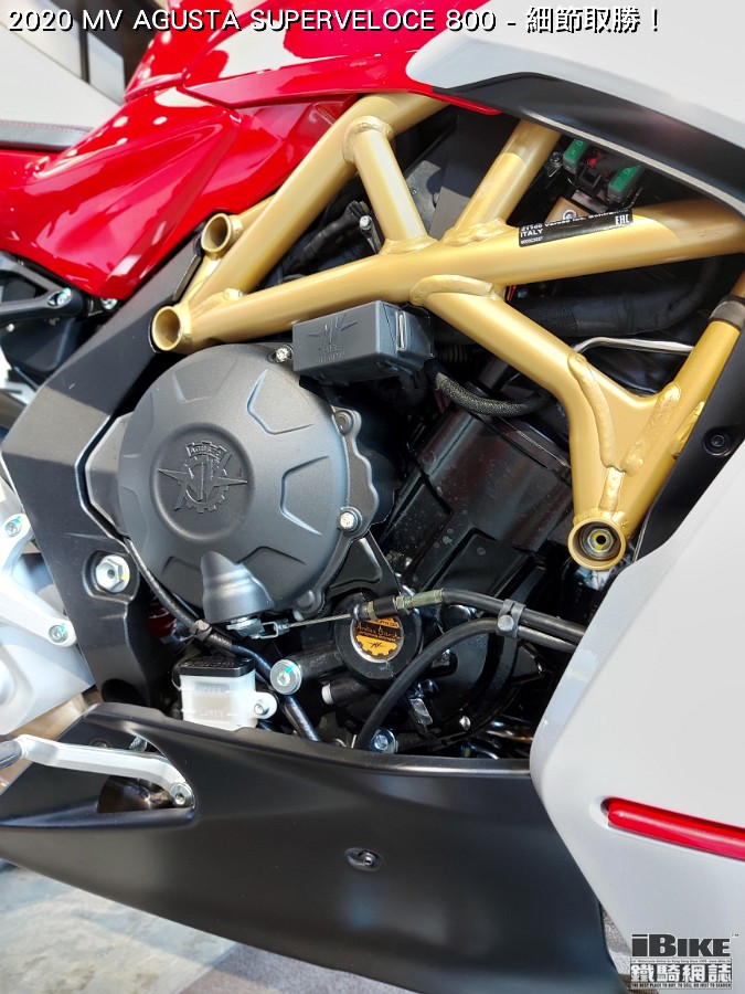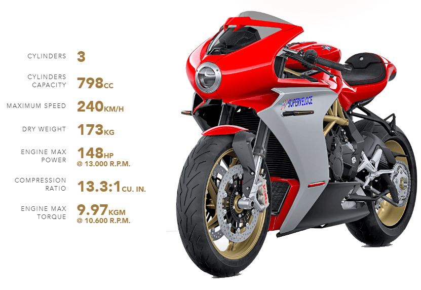 Superveloce 800擁有可調式腳踏,TFT錶板、高性能避震和制動配套,水冷直三引擎擁有148HP/13000rpm和 8.97kg-m / 10,600rpm強大輸出,還有四重動力模式和八級循跡穩定系統,Superveloce 800的戰鬥力不用懷疑。