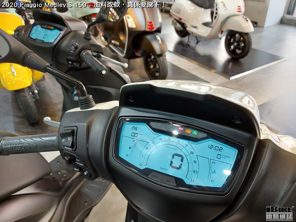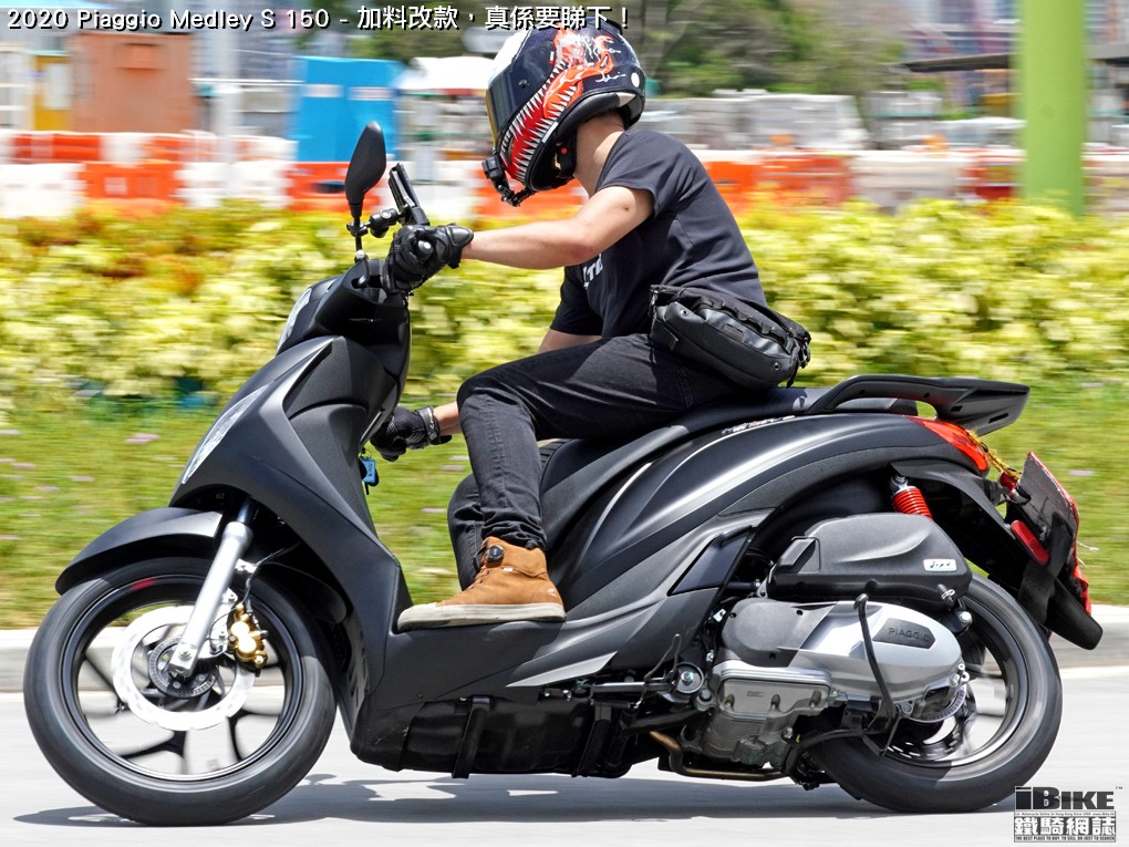 ![]() Piaggio Medley S 150 ABS 規格表 引擎形式 i-get四衝程單汽缸SOHC 4V引擎 燃油配置系統 電子燃油噴射 排氣量 155 cc 缸徑與衝程 58 mm x 58.7 mm 最大馬力 15ps / 7,750 rpm 最大扭力 1.47kg-m / 6,400 rpm 冷卻方式 水冷 變速系統 CVT無段自動變速器 車架 單籃高拉力鋼管及鋼板 前避震 套管前叉,88mm行程 後避震 雙筒式,五段預載調較,76mm行程 前胎 無內膽100/80-16" 後胎 無內膽110/70-14” 前煞車 260mm單碟配25.4mm雙活塞浮鉗,ABS 後煞車 240mm單碟配22mm雙活塞浮鉗,ABS 座高 799mm 長度 2020mm 寬度 705 mm 輪距1,390 mm 油箱容量7公升 |