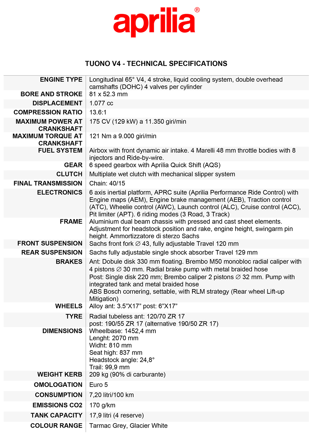 In addition to the APRC system, Tuono V4 and
