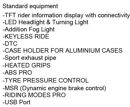 Adventure,2021年增設USB供電插座,轉向指揮燈都是LED規格。也新增了可以徒手調較高度的運動風擋。