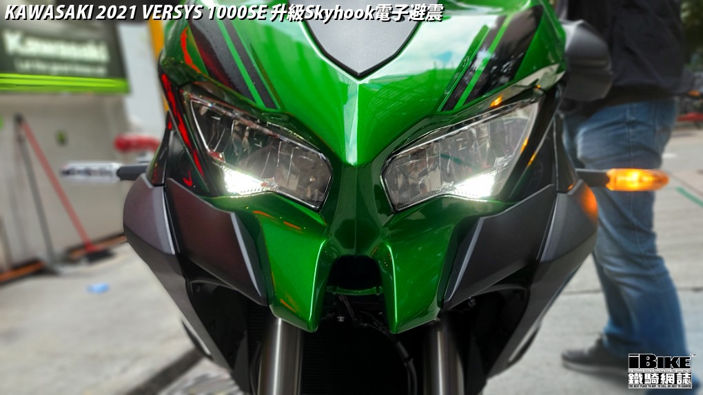 來到2021年,我們已介紹過新增設的Versys1000 S版。而今次到港是更上一層的頂級SE版。SE版採用了能夠因應路面狀況,主動調較油壓反應的Showa Skyhook電子避震。借助Skyhook技術和新款Bosh慣性測量單元IMU,Versys 1000SE 提供最舒適和最新電子輔助系統。根據Kawasaki的官方說法,Versys 1000的定位不是off-road bike,而是For-Any-Road bike。可見廠方對Versys 1000的性能及可靠度都充滿信心。標準版沒有TFT錶板和IMU慣性感測儀,導至很多安全防護措施例如KCMF(Kawasaki Cornering Management Function)都沒有。標準版也沒有電子避震,也沒有TFT錶板,相當齋。所以有錢的香港車迷一定會選SE版。