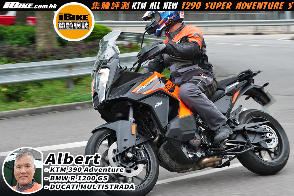 Albert的電單車牌牌齡近三十年,近十年喜愛歷奇車種,原因是喜愛歷奇車這種開揚高大的坐姿,動力也相當澎湃。Albert是BMW水鳥和Ducati MTS Enduro車主,現在以一臺KTM 390 Adventure作為其中一臺腳車。