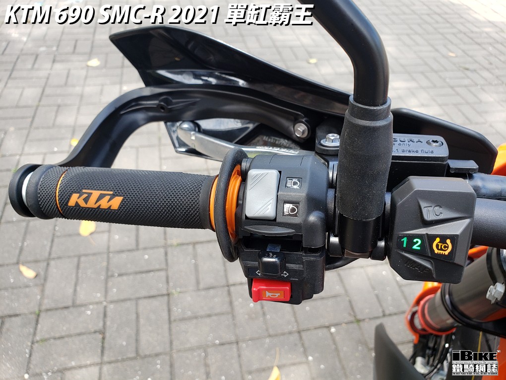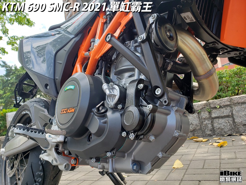 KTM 690 SMC R在2019年內外都有改良提升表現,動力心臟是招牌LC4單缸4V機器,內置的雙平衡軸提升抑震效果。引擎內部重要構件也有減重,出力更平穩順滑。2021年最重要的改動是LC4單缸引擎廢排符合歐五規格,所以排氣喉粗了少許。錶板顯示也有更新,左邊多了波段顯示。