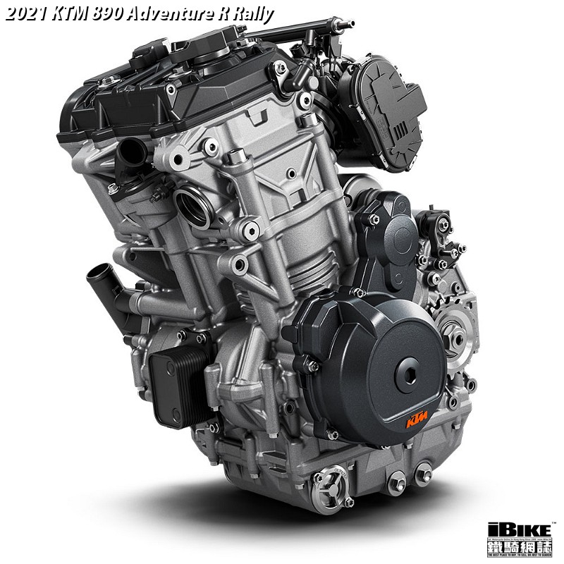 想進一步了解890 Adventure,不應單看790 Adventure,而應看890 Duke R。因為890 Duke R採用的890cc水冷直二機器係全新設計,缸徑衝程數值不同於790,生死汽閥也要重新擺過位,也新增了平衡軸。890引擎具有更高的壓縮比,更大的進氣門和排氣門,凸輪軸,更輕的活塞設計以及新的連桿,所以馬力更強。為了加強890 Adventure尾胎在泥道上的咬地能力,890 Adventure的飛輪重量增加了20%,出力較Duke R沉穩。